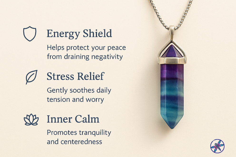 I've been wearing my fluorite pendant daily, and it has profoundly contributed to my emotional balance. I feel more poised and centered.