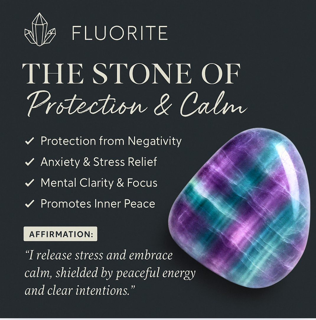 Calming. Balancing. Protective. Fluorite's unique properties transform negative into positive energy, promoting holistic well-being and emotional balance.